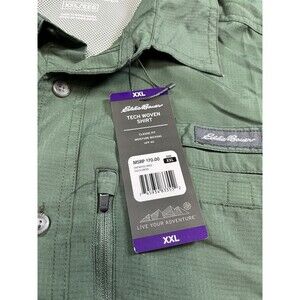 NWT Eddie Bauer Men's Relaxed Fit Short Sleeve Tech Woven Shirt Green Size XXL