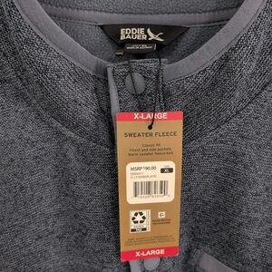 NWT Eddie Bauer Men’s XL Classic Sweater Fleece 1/4 Button Blue Heathered New
