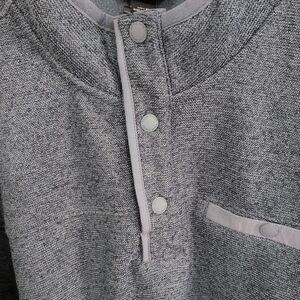 The NWT Eddie Bauer Men’s XL Classic Sweater Fleece 1/4 Button in Blue Heathered is a stylish and versatile addition to any man's wardrobe. Made from polyester with a knit fabric type, this sweater features a quarter button closure, a spread collar, and convenient pockets. Perfect for casual occasions in the winter, fall, or spring, this mid-length sweater offers a comfortable fit and is machine washable for easy care. The Eddie Bauer logo adds a touch of classic style, making it a practical and fashionable choice for outdoor activities like walking or hiking.