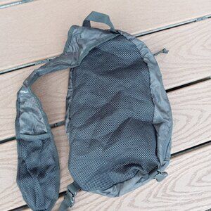 NWT. Compact, lightweight and easy to pack - perfect for any adventure. Packs into its own zippered pocket for compact storage. Dark grey/black - Eddie Bauer's color is Onyx. Features: A lightly padded shoulder strap with small mesh pocket - the strap is interchangeable, so it can be worn on either shoulder; padded mesh back panel; zippered front pocket with key clip that would also fit a wallet or cell phone; spacious side zip pocket for water, snacks, maps, etc. (side zip pocket also contains a small inside zip pocket); top grab handle. Opened and lightly stuffed, measures approximately 14"H x 8.25"W x 4.25" at the base; closed - 8.5"H x 6"W x 3.5". 10L capacity. New, unused condition.