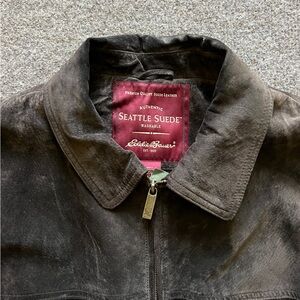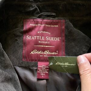 NWT Eddie Bauer Seattle Suede Leather Trucker Jacket Full Zip Brown Large Tall