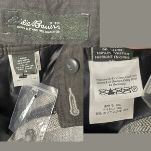 NWT Eddie Bauer gray tweed dress pants in size 18 feature a timeless herringbone pattern that blends wool’s warmth with classic tailoring. With a structured straight-leg cut, full lining, and a double-button waistband, these pants are ideal for officewear, business casual, or refined everyday looks. The versatile gray tweed makes them a perfect fit for academia, preppy, or minimalist wardrobes, while the wool blend provides warmth for cooler seasons. Their heritage-inspired pattern works well for quiet luxury and professional style.