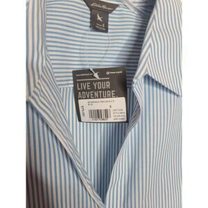 NWT Eddie Bauer Wrinkle Free blue white striped button down shirt blouse - small