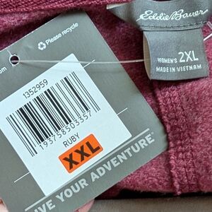 NWT Eddie Bauer open front Camp fleece cardigan sweater jersey ruby size XXL