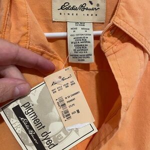 NWT Eddie Bauer pigmented dyed shirt orange button down. Size M