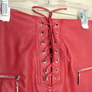 NWT Edge Street Red Faux Leather Mini Skirt Zippers Lace Up Vegan Women's XS