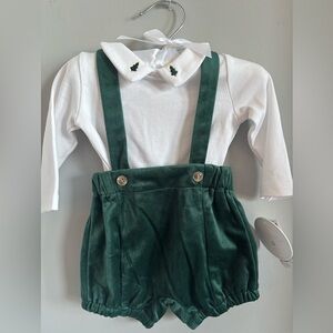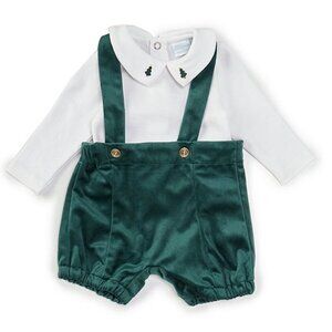 NWT Edgehill Collection Baby Boy Peter Pan Long Sleeve Velvet Shortall Set, 3M