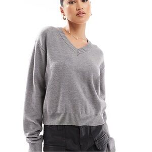 NWT Edikted Comfort Club V Neck Sweater M/L Gray Ribbed Details