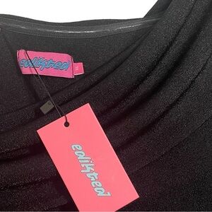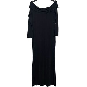 NWT Edikted Susan Fold Over Bodycon Slinky Maxi Dress in Black Size XL