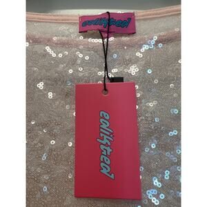 NWT Edikted Women’s Shimmer Sheer Mesh Boat Neck Night Out Style Top Size M Pink
