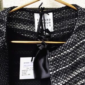 Edward Achour, designer jacket, Paris fashion, luxury jacket, swing jacket, cropped jacket, black and white jacket, tweed jacket, boucle style, gold chain detail, statement jacket, short sleeve jacket, open front blazer, collaredless jacket, Parisian style, high fashion outerwear, elegant layering piece, fashion week, capsule wardrobe, chic minimalist, structured jacket, timeless blazer, trending jackets, statement outerwear, fashion influencer style, new with tags, couture-inspired, contemporary jacket, sophisticated style, wearable art, elevated basics, French fashion, textural jacket, Edward Achour Paris, runway look, boucle trend, fashion blogger favorites, poshmark trending