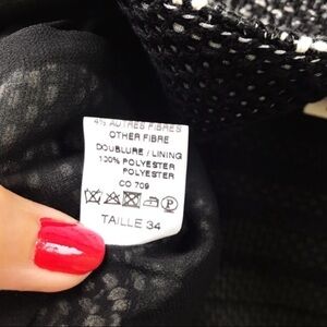 NWT Edward Achour Paris Black White Textured Woven Swing Jacket 4 Chain Detail