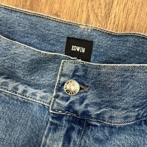 Vintage-inspired with an exaggerated pleat detail, this style from EDWIN is featured in a high-rise, relaxed silhouette and lightweight design for a timeless staple.