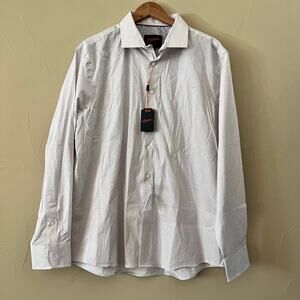 NWT Egara Men’s Slim Fit Easy Care Dress Shirt: White w/ AOP - Size XL