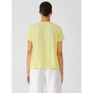 NWT Eileen Fisher 100% Organic Linen Jersey Crew Neck Tee Shirt Citrus Yellow Womens Size XXS
