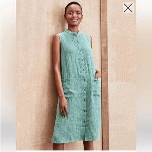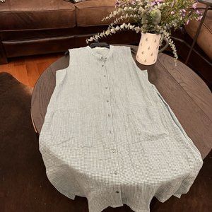 NWT Eileen Fisher AMAL Organic Linen Mandarin Collar Long Tunic Dress
