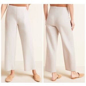 NWT Eileen Fisher Boiled Wool Jersey High Waisted Wide-Leg Pants in Chalk Size L