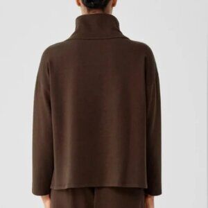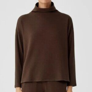 NWT Eileen Fisher Cozy Funnel Neck Box Top Brown Size Large