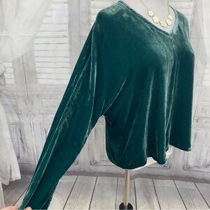 NWT Eileen Fisher Dolman Sleeve Sweater Pine Green Silk Blend V-Neck Oversized