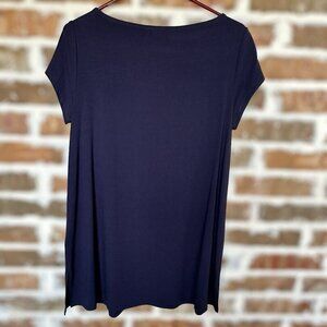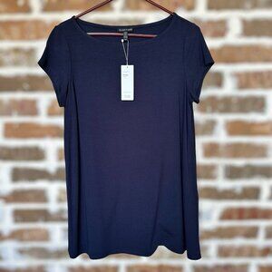 NWT Eileen Fisher Jersey Tunic Short Sleeve Viscose Spandex Blue Top Size M