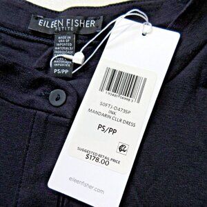 NWT Eileen Fisher Mandarin Collar in Ink Fine Tencel Jersey Henley Dress PS