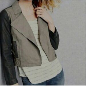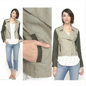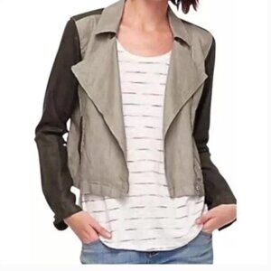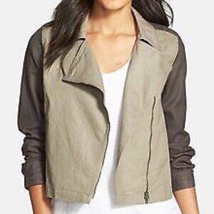 NWT Eileen Fisher Organic Coated Linen Moto Zip Jacket Stone S