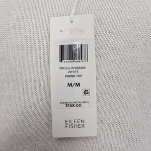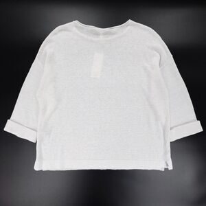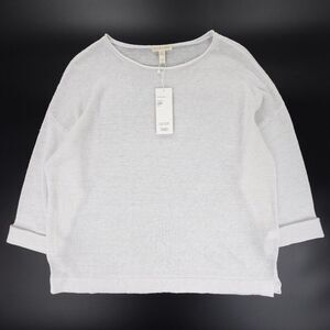 NWT Eileen Fisher Organic Linen Round Neck Knit Sweater White Minimal Lagenlook