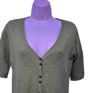 NWT Eileen Fisher Petite xs PP Women green cardigan v neck short sleeve linen