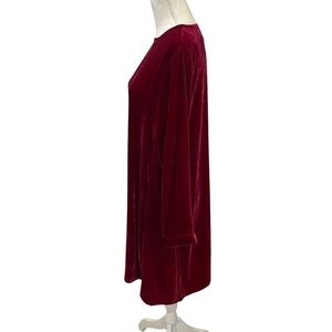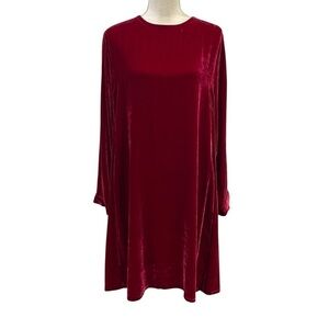 Eileen Fisher Ruby Crew Neck Velvet Silk Long Sleeve Shift Dress
