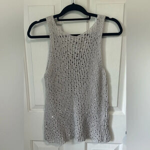 NWT Eileen Fisher Silver Sequin Chainmail Mesh Tank. Size PL.
