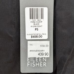 NWT Eileen Fisher Women's Funnel Neck A-line Coat Size Petite Small in Black