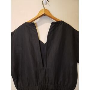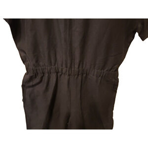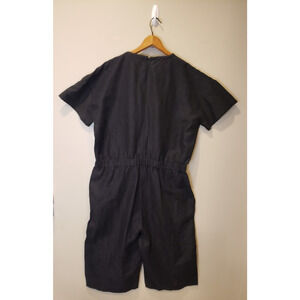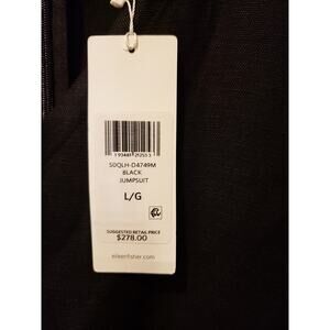 NWT Eileen Fisher Womens Linen Blend Slub Jumpsuit Black Wide Leg Cropped Large