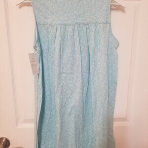 NWT Eileen West Nightgown Sleeveless short gown Blue floral Lace sz S