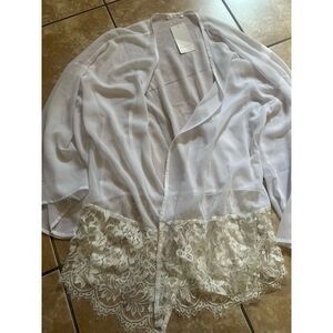 NWT Ekouaer L Sheer Lace Open Robe Lingerie Duster White