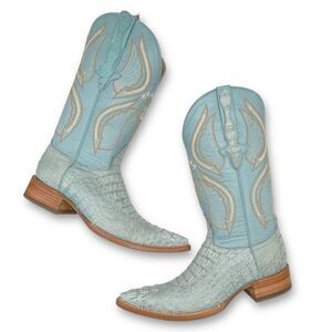 NWT El General Caiman Cowboy Boots Light Blue Leather US Size 9 MX 26 Rodeo Boho
