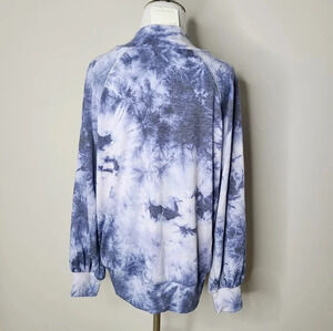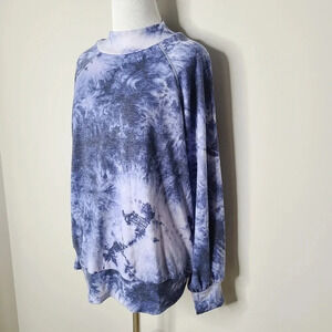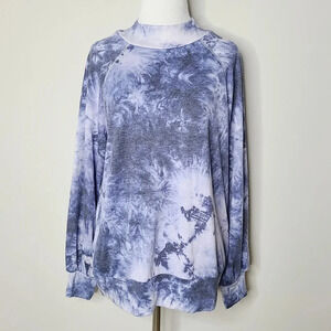 New with Tag Elan Blue Tie Dye Mock Neck Sweatshirt. Features raglan sleeves with a slight balloon sleeve. Pairs well with jeans! Size and Material Tag missing. Please see measurements.