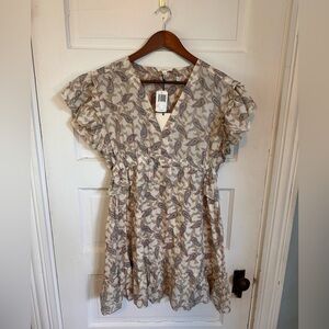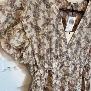 NWT Elan Flutter Sleeve Natural Paisley Travel Dress women’s size medium Ruffle
