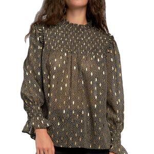 NWT - Elan Metallic Foil Printed Smocked Blouse โ Size Medium โจ