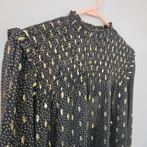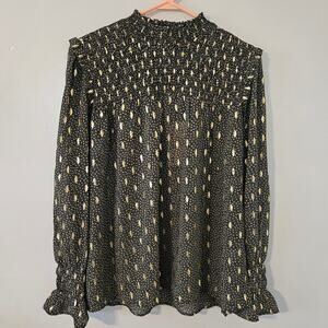 NWT Elan Metallic Foil Printed Smocked Blouse Sz Medium