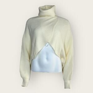 NWT | Elan | Mock Neck Dolman Criss-Cross Balloon Sleeve Sweater | Cream | Small
