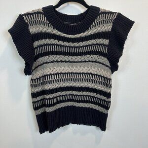 NWT Elan Size Medium Striped Cap Sleeve Textured Short Sleeve Sweater