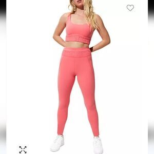 Size Small Smocked High Waisted leggings with pockets. New with tags. Sunkissed Coral Color. High waist is 12.5" flat unstretched. Rise 11". Inseam 25"