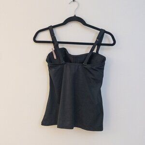 NWT Elegant Black Tankini Swim Top Built-in Adjustable Straps **Body-Flatter**