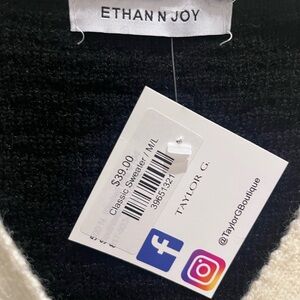 NWT Elegant Black and Cream Cardigan with Pearl Buttons