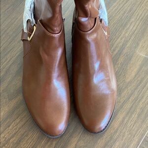 Step out in style with these elegant brown leather knee-high boots. Perfect for any occasion, these boots offer both comfort and sophistication.