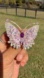 Add a touch of elegance to your outfit with this stunning butterfly brooch. Featuring a vibrant purple centerpiece and shimmering gold accents, this piece is perfect for any occasion.