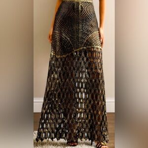 GORGEOUS Euro-style, sheer and lightweight, giving music festival / hot summer vibes while looking like an ancient Egyptian princess. Black and gold metallic. Semi Sheer throughout.