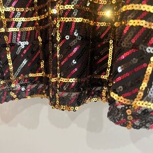 Shine with this gold and black sequin plaid skirt. Perfect for adding flair to any outfit.