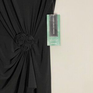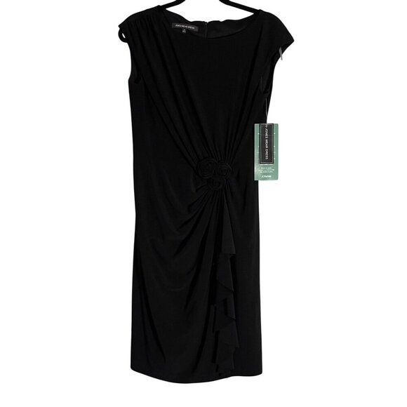 NWT Elegant Jones Wear Black Sleeveless Dress With Floral Ruching Size 8 NEW