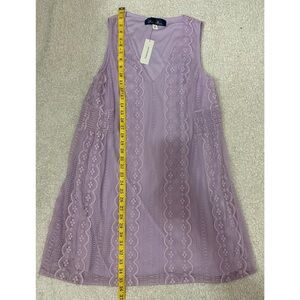 Step out in style with this elegant lavender lace dress. Perfect for any occasion, this dress offers a flattering fit and a touch of sophistication.